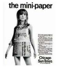 В 1966-м в моду вошли простые одноразовые платья из бумажной ткани, или «платья- постеры». Они мгновенно стали мега популярными, особенно среди американок, и вскоре появились целые бутики бумажной одежды. Цена на них была фиксированной - 1 доллар 25 центов, и кроме набивных принтов на них изображались актуальные в обществе темы, такие как космический полет или картина Уорхола Cambell Soup.
